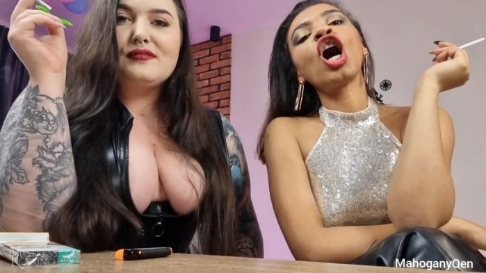 On your knees beta! today Your MahoganyQen and Mistress Karino going to make some use of your dirty mouth. Open it wide for us and seve as human ashtray and spitter. We will make you eat all the dirt from our cigarettes, cause youre nothing more than a bin for us. Every beta slave like you have to do the job he was made for
