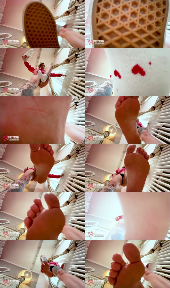 Mistress Sarah: I'll stomp on you (private video). You want to know what it looks and feels like when I stomp on you, flatten you, obliterate you, and crush you? I'll gladly make a video for you. I'll crush and stomp on you under my sneakers, under my cute socks, and of course, on my bare soles. I'll stand on your face and let you feel my weight. I made this video for a fan, but you can have it too