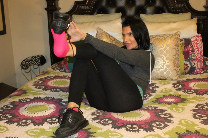 Miss Xana shows us her sexy workout feet after the gym. Super sweaty she reveals her perfect arches, toes and heels. Come lick and kiss her size 7's and show her you are the perfect foot slave.